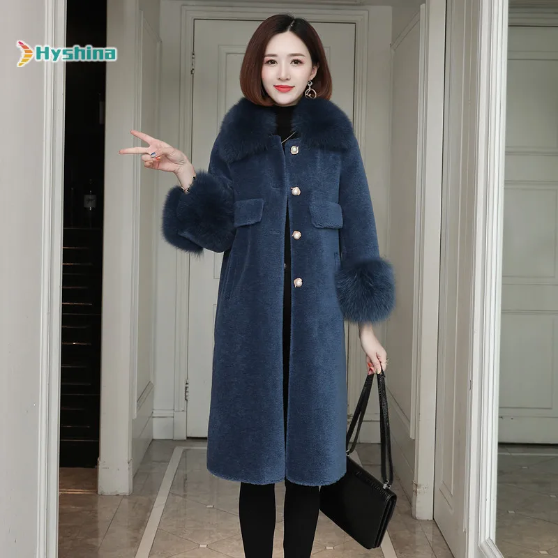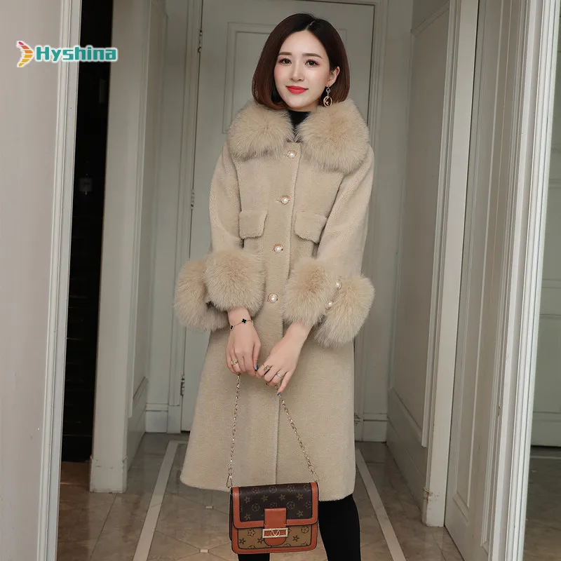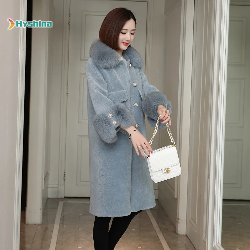 Special Offer Frauen Winter Echte Schafe Lammfell Mantel Weiblichen Medium Lange Fuchs Pelz Kragen Wolle Mädchen Oberbekleidung Tops Und Blusen Discount 15% Today!