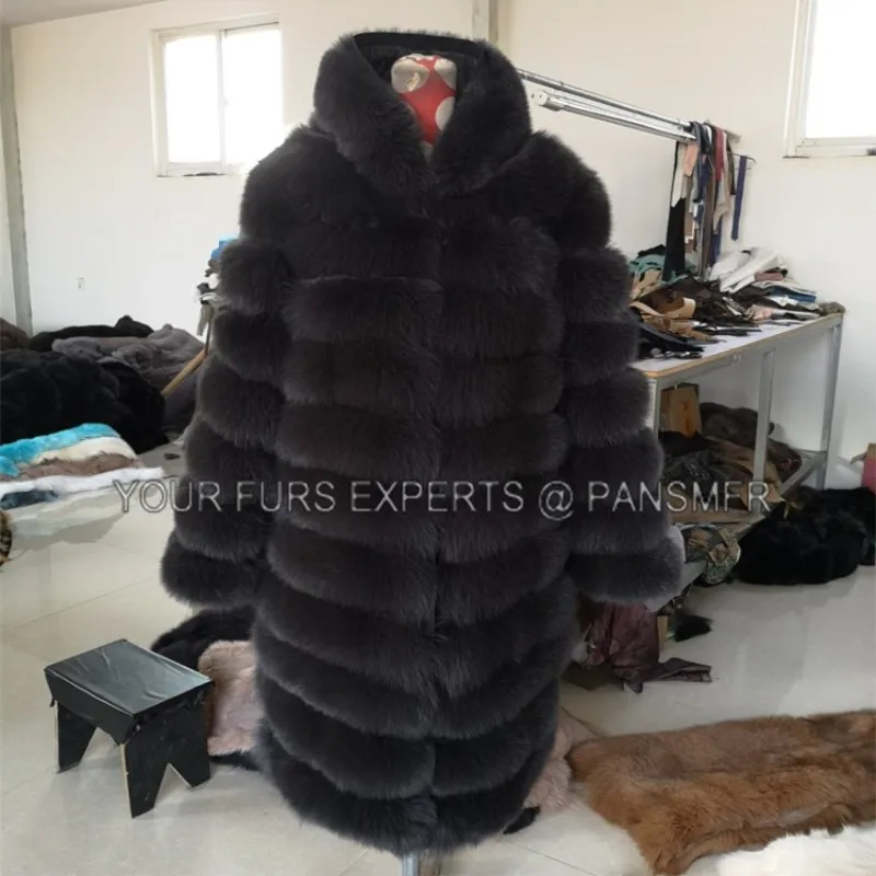 Special Offer Russische Stil Wunderschöne Echt Fuchs Pelz Mit Kapuze X-langen Mantel 110CM Frauen Winter Warme Abnehmbare Kapuze ärmel Und Hüfte Echtem Pelz Outwear Discount 30% Today!