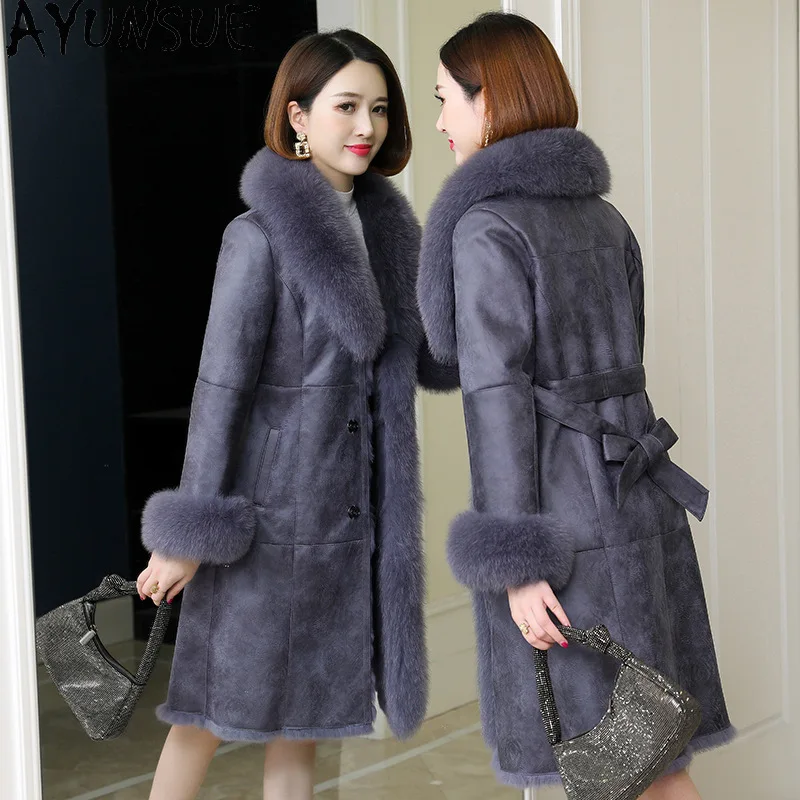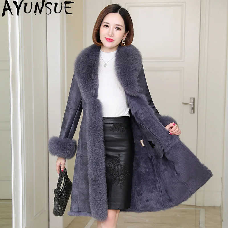 Special Offer AYUNSUE Echt Fox Pelz Kragen Natürliche Kaninchen Pelzmantel Weibliche Winter Kleidung Frauen Elegante Pelz Jacke Frau Mäntel Und Jacken F2030 Discount 50% Today!