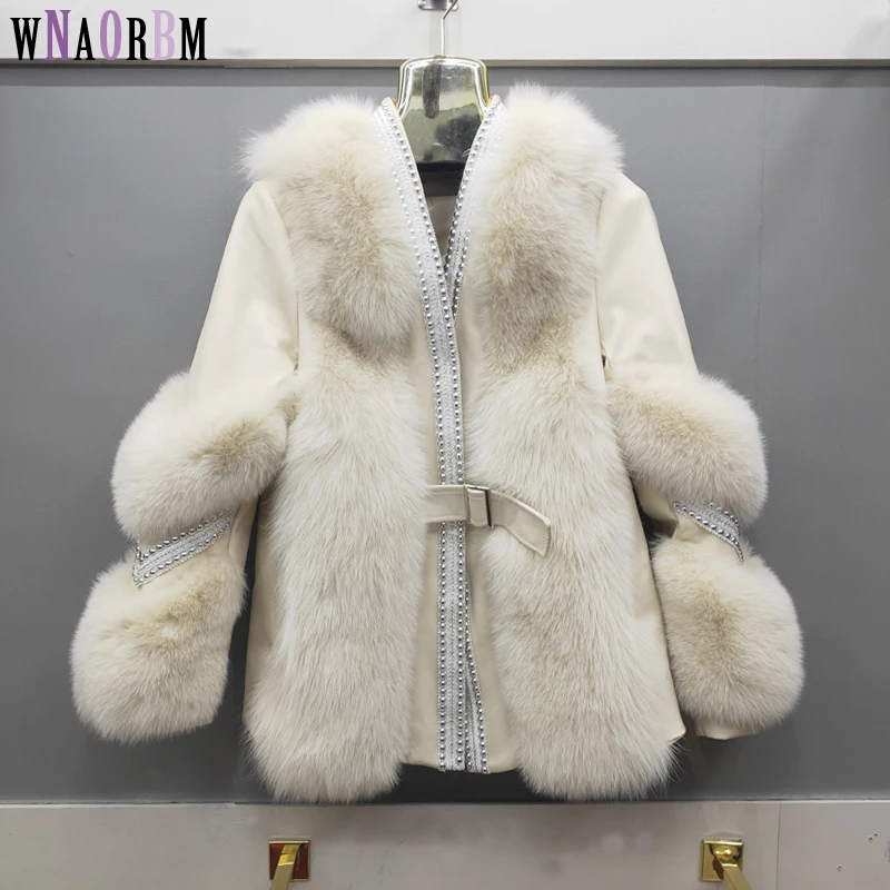 Special Offer 100% Natürliche Echt Fox Haut Frauen Mantel + Real Schaffell Leder Jacke Langarm Mit Diamant Gürtel, Taste Freies Discount 54% Today!