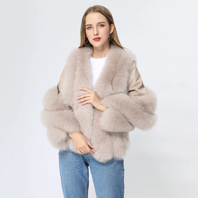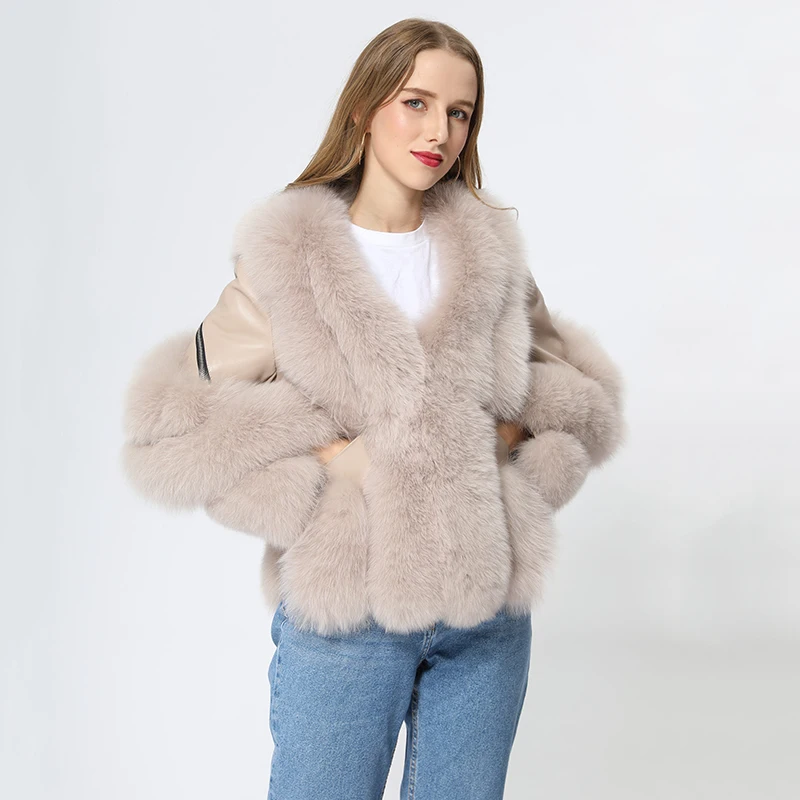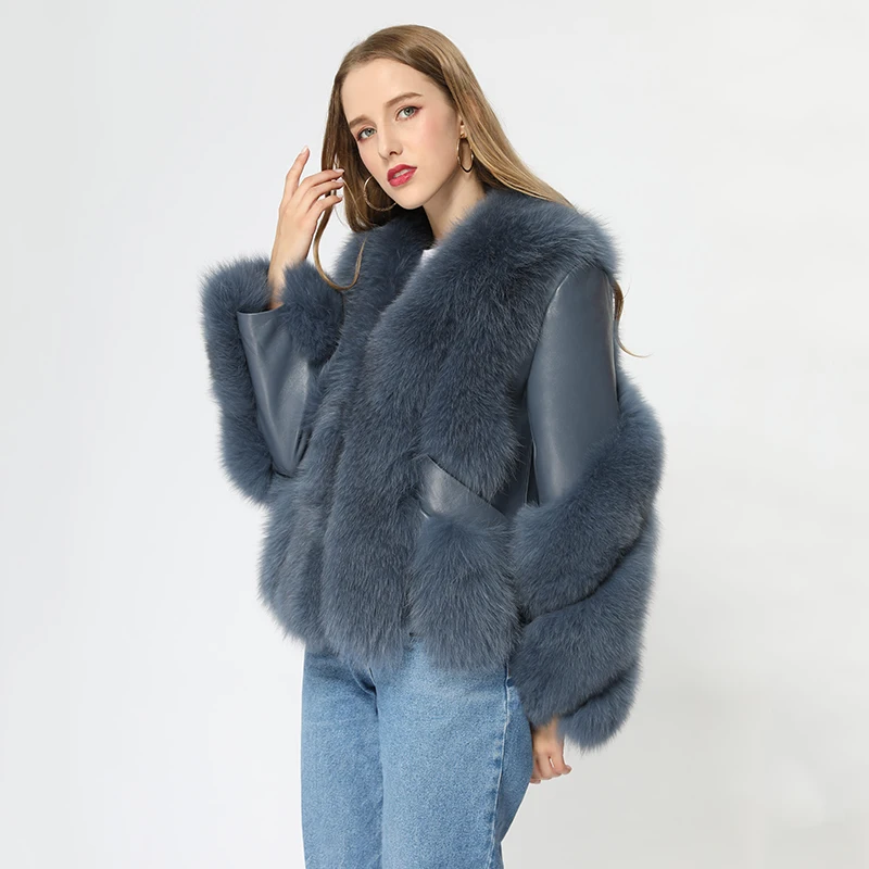 Special Offer Winter Frauen Kurze Casual Voll Ärmeln V-ausschnitt Echt Fuchs Pelz Mantel Mit Leder MJF-FC-27 Discount 46% Today!