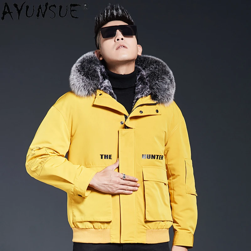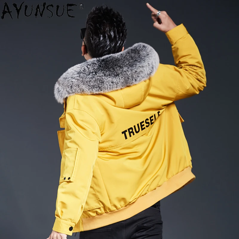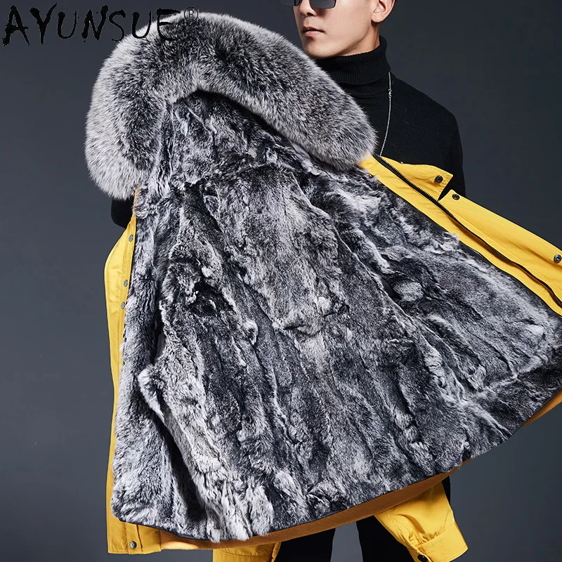 Special Offer AYUNSUE Winter Jacke Männer Kleidung Mit Kapuze Parka Echt Kaninchen Pelz Mantel 100% Fuchs Pelz Kragen Baumwolle Ärmel Ropa De Hombre LXR844 Discount 50% Today!