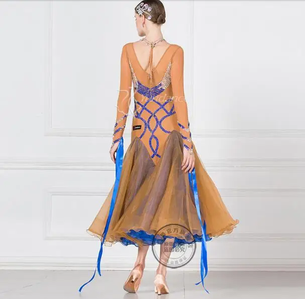 Special Offer Anpassen Blau Schwarz Patchwork Puff Langarm Fuchs Trot Walzer Tango Salsa Wettbewerb Ballroom Dance Kleid Discount 28% Today!