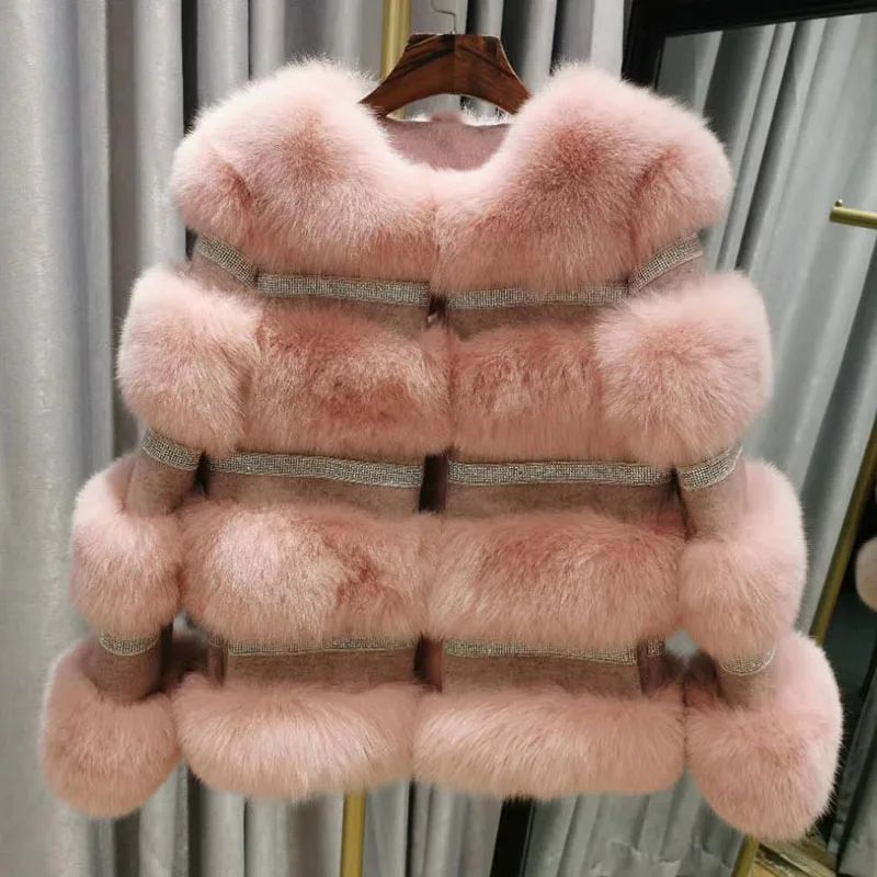 Special Offer Winter Warm Echte Fuchs Pelzmantel Frauen Langarm Mode Striped Genuine Fuchs Pelz Mäntel Oansatz Dicken Shinny Warme Echt Pelz Jacke Discount 30% Today!