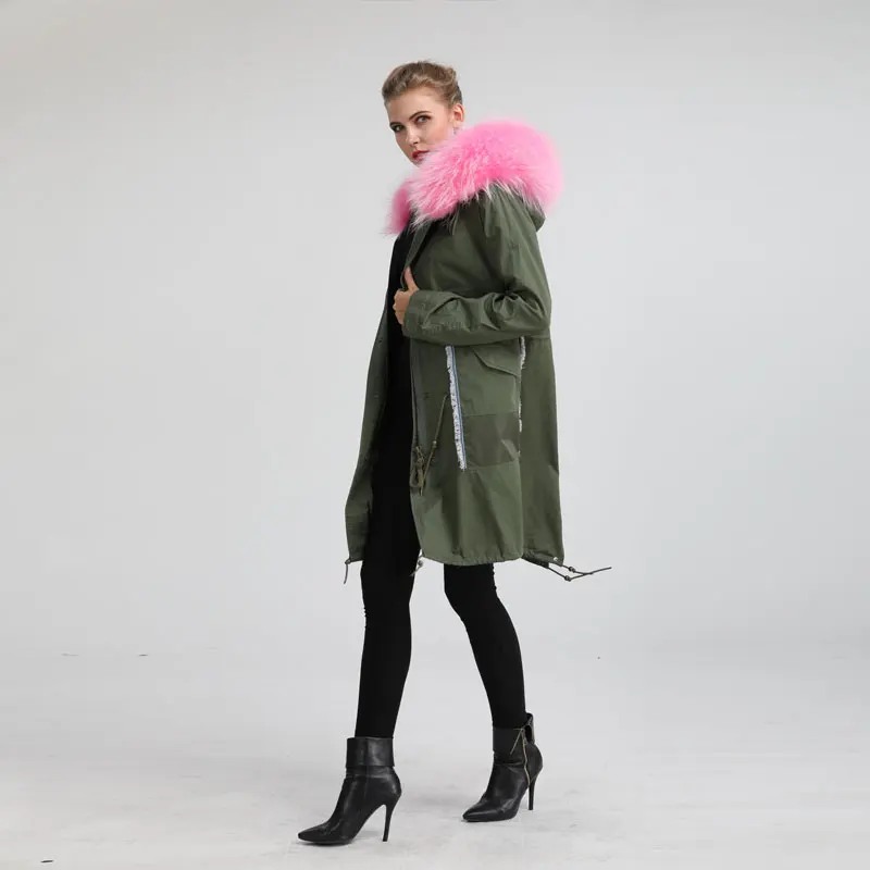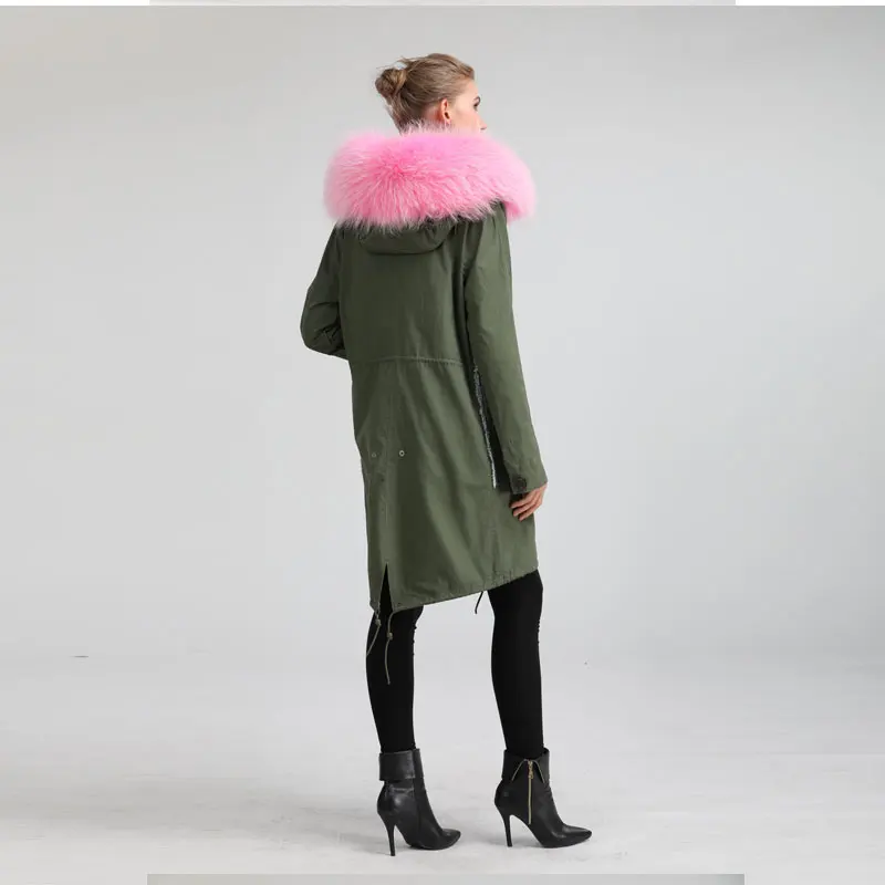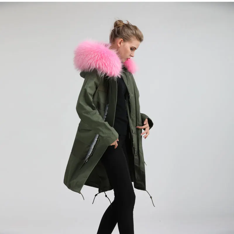 Special Offer Neue Ankunft Winter Mode-stil Mr Mrs Oder Tragen Mit Sehr Rosa WaschbÀren Pelzkragen Lange Jacke Discount 0% Today!