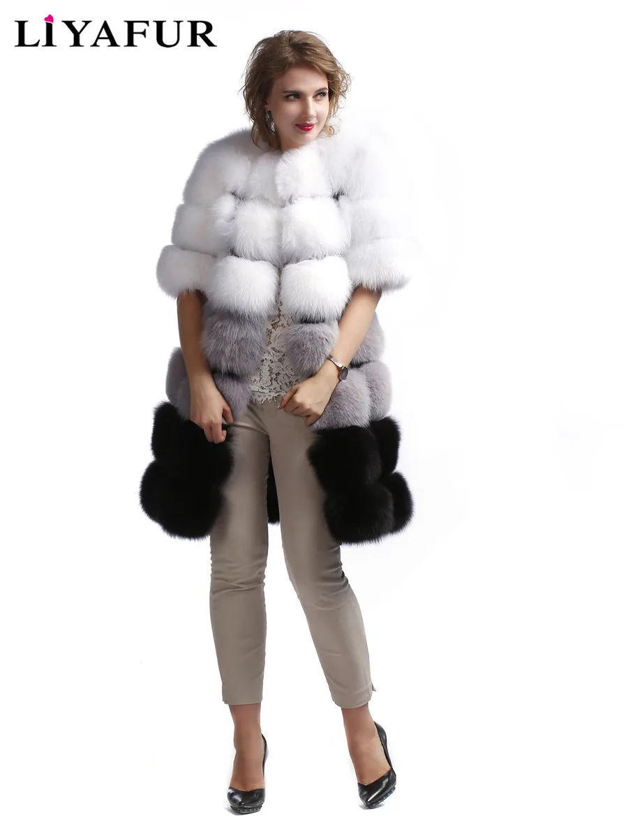 Special Offer LIYAFUR New Women's Real Genuine Fox Fur Coat With Half Sleeve 100% Natural Fur Outerwear For Women Winter Long Warm Vest Gilet Discount 0% Today!