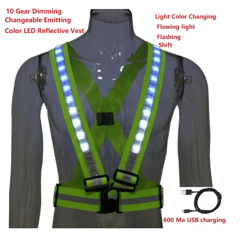 Special Offer 10 Getriebe Dimmen USB Lade LED Grün Elastische Gürtel Reflektierende Gurtband Weste Für Radfahren Laufen 360 Grad Von Reflektierende Discount 0% Today!